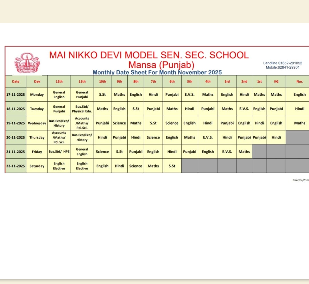 Monthly Date Sheet